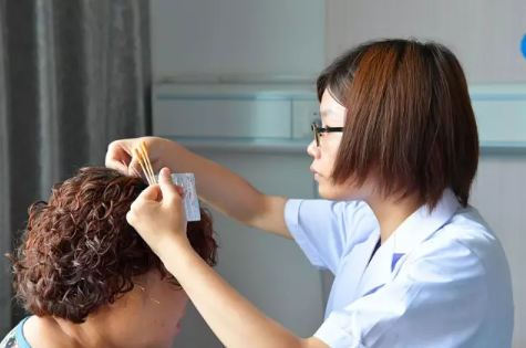 【治療方法】根據(jù)患者病情在選取的穴位上進(jìn)行撳針的埋針治療,一般選取6個(gè)穴位,貼好后叮囑患者定時(shí)按壓撳針敷貼達(dá)到穴位持續(xù)刺激作用,一般一次撳針敷貼可保留2-3天時(shí)間,以便留給患者調(diào)整到院換帖的時(shí)間。