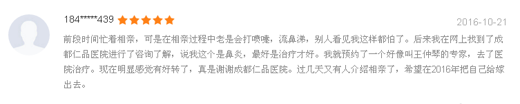 成都仁品治療好了你的鼻炎,比較希望你在2017年前已經找到了良人。